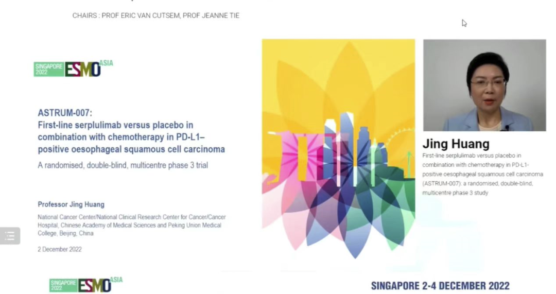 ESMO ASIA,實在振奮人心。在此,我們衷心感謝受試者及其家屬對本研究、對食管癌領域發展的支持與貢獻。基於ASTRUM-007研究,斯魯利單抗聯合化療一線治療局部晚期/轉移性食管鱗癌的上市註冊申請已獲得中國國家藥品監督管理局(NMPA)的受理,期待斯魯利單抗一線治療食管癌的適應症能夠早日獲批,惠及更多患者。