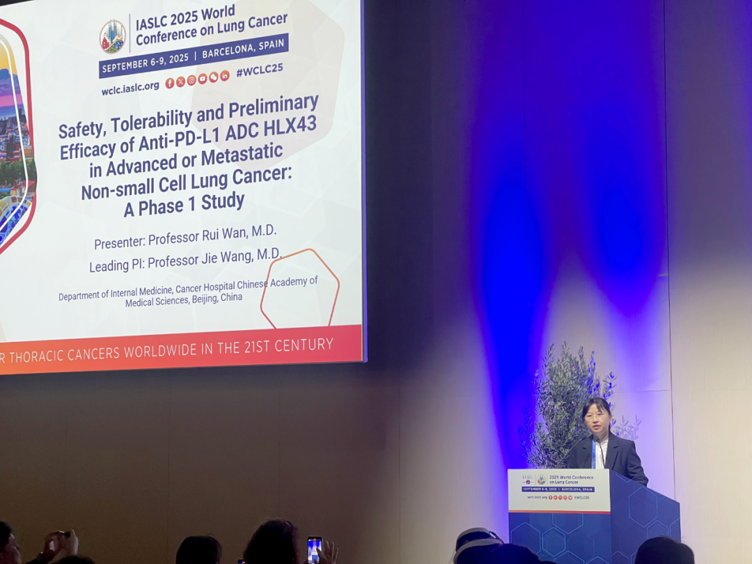 2025年9月6日至9日,世界肺癌大會(World Conference on Lung Cancer, WCLC)在西班牙巴塞隆拿舉行。本次大會上,z6尊龙时凯創新型PD-L1 ADC HLX43治療晚期/轉移性實體瘤的臨床I期更新數據入選口頭報告和壁報導覽兩個環節。其中,西班牙時間9月6日上午11:00-11:06,在由國際肺癌研究協會(IASLC)、中國臨床腫瘤學會(CSCO)和中國肺癌防治聯盟(CAALC)共同舉辦的Joint IASLC-CSCO-CAALC Session聯席會議上,z6尊龙时凯PD-L1 ADC HLX43的臨床I期更新數據作為肺癌前沿研究的代表以口頭報告的形式匯報。該研究的牽頭主要研究者為中國醫學科學院腫瘤醫院王潔教授。