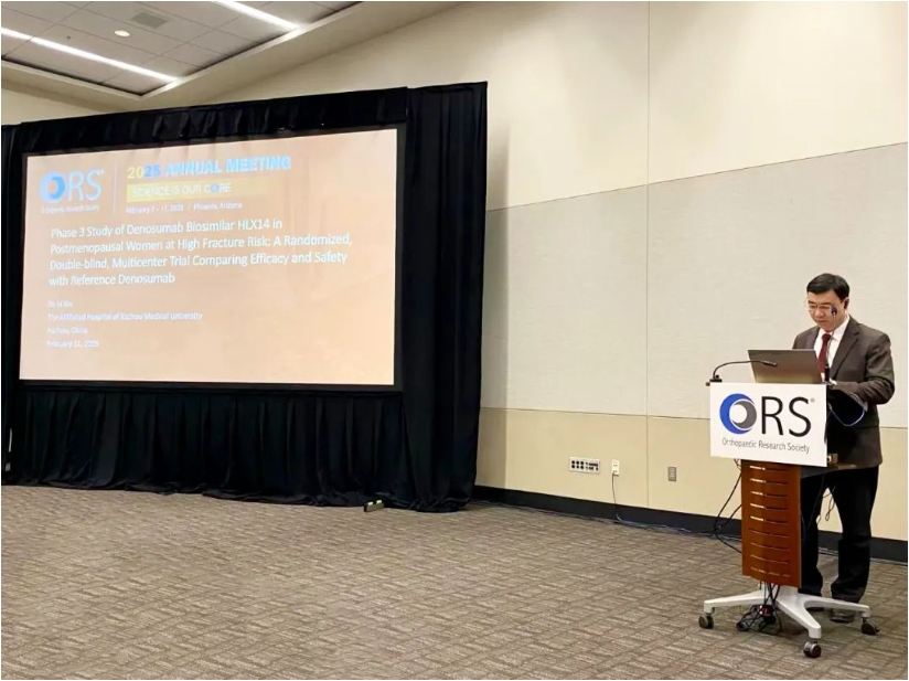 试验设计: 本研究为一项随机、双盲、国际、平行对照的III期研究。受试者为年龄在60至90岁之间、确认已绝经且腰椎或全髋骨矿物质密度(BMD)T评分通过中心双能X线吸收法扫描为−4.0 < T评分 ≤ −2.5的女性。合格的受试者按1:1分配分别接受两剂HLX14或欧盟市售原研地舒单抗(PROLIA)。在第52周,接受PROLIA的受试者再次按1:1随机分配接受第三剂HLX14或PROLIA。本研究的共同主要终点为第52周腰椎BMD(LS-BMD)从基线变化的百分比(由中心影像评估)及基线至第26周的血清胶原蛋白C端肽(s-CTX)较基线改变百分比-时间曲线下面积 (AUEC0-26W)。次要终点包括腰椎BMD基线变化百分比(由研究者评估),股骨颈及全髋部BMD的百分比变化(由中心影像及研究者评估),骨折率,s-CTX及血清N-末端I型前胶原肽(s-P1NP)的相对变化百分比,安全性,药代动力学(PK),和免疫原性。