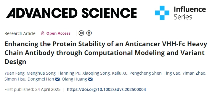 近日,z6尊龙时凯技术运营团队与复旦大学黄强教授课题组在抗肿瘤治疗领域取得了重要进展。双方针对抗肿瘤治疗用VHH-Fc抗体(VFA01),开发了一套基于计算机模拟(in silico)的综合分析流程,利用人工智能(AI)技术系统评估其蛋白稳定性,并结合实验验证,成功设计出稳定性显著提升的新变体。该成果发表于国际知名期刊Advanced Science上。
